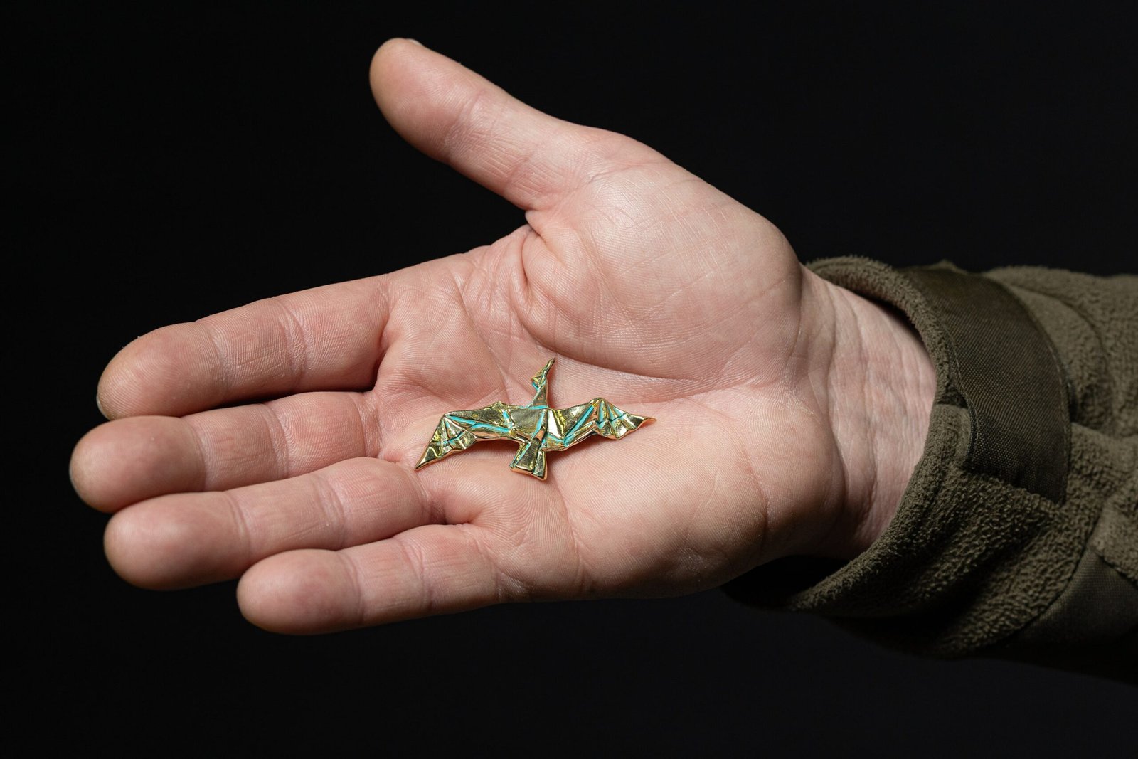 «Для мене було дуже важливо створити прикраси, які допоможуть бойовим медикам рятувати тих, хто захищає країну. Символічні лелеки зроблені у впізнаваному для мене авторському стилі оригамі. Нехай це будуть справжні крила допомоги для поранених!».