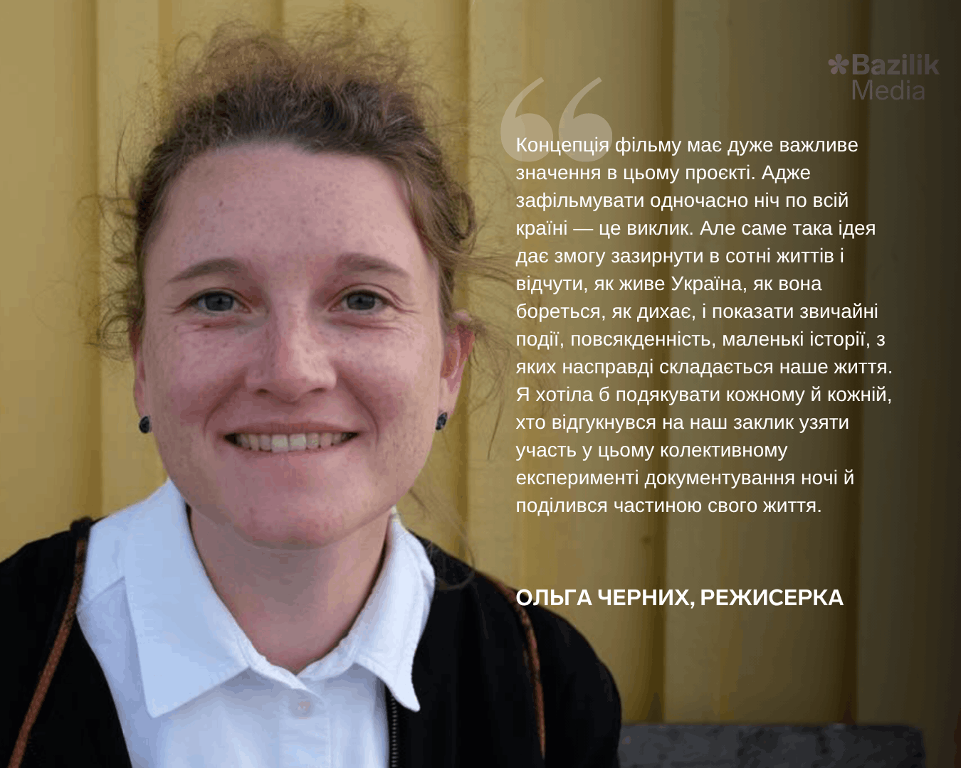 «Ми задумали мистецький акт — своєрідний гепенінг, де кожен охочий міг стати співтворцем фільму. Так ми хотіли задокументувати цю дивну нову українську ніч під час війни. Експеримент вдався: разом ми зняли її “зліпок”. Попри темні часи, вона сповнена світла й тепла».