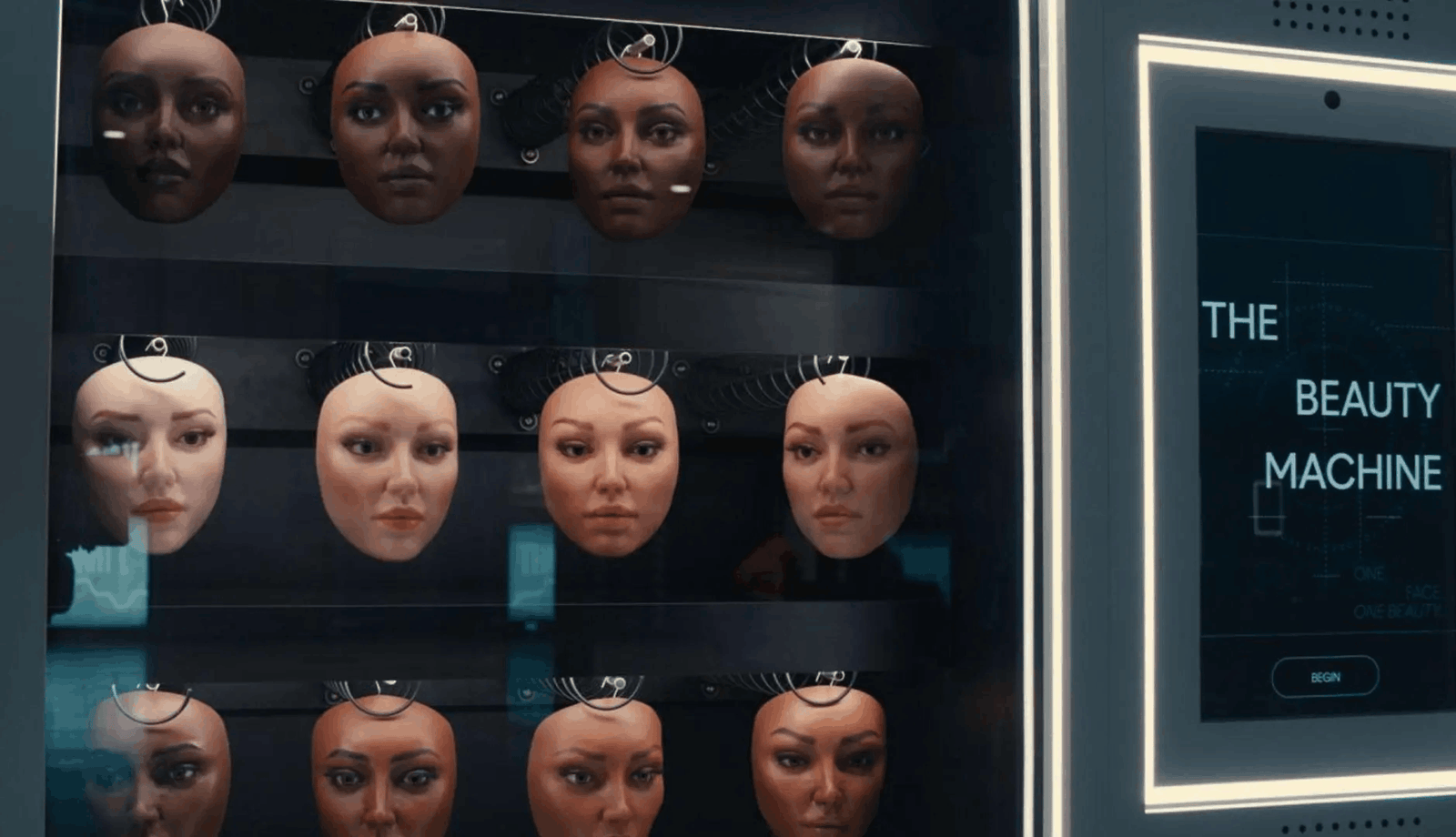 На перший погляд, The Beauty Machine є інтерактивним об’єктом, що дає змогу побачити різноманіття облич — відображення сучасного уявлення про інклюзивність і різноманітність. Однак під час взаємодії з об’єктом стає очевидно: незалежно від вибору результат завжди однаковий. Машина відтворює гладке стандартизоване обличчя, яке відповідає умовному ідеалу. Цей ефект спричиняє дискомфорт: очікування різноманіття не справджується, натомість користувач бачить повторення того самого образу.