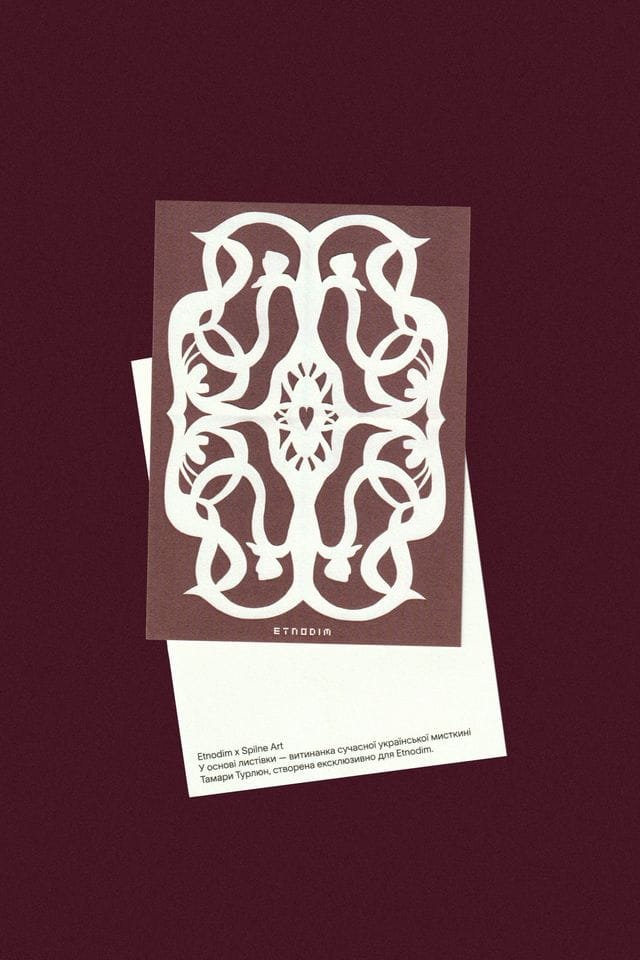 Отримати листівку-витинанку Etnodim x Тамара Турлюн або надіслати її близькій людині можна під час оформлення онлайн-замовлення на сайті бренду, а також офлайн у шоурумах Etnodim у Києві та Львові  до 15 лютого.