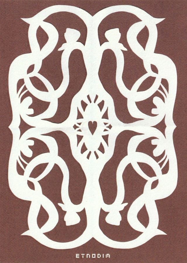 Бренд сучасного вишитого одягу Etnodim у партнерстві з українською мисткинею Тамарою Турлюн створили лімітовану серію листівок до Дня закоханих з авторською ілюстрацією у техніці витинанки.