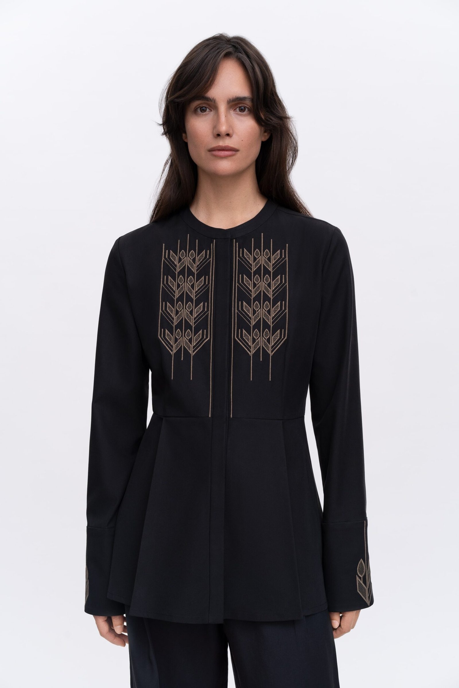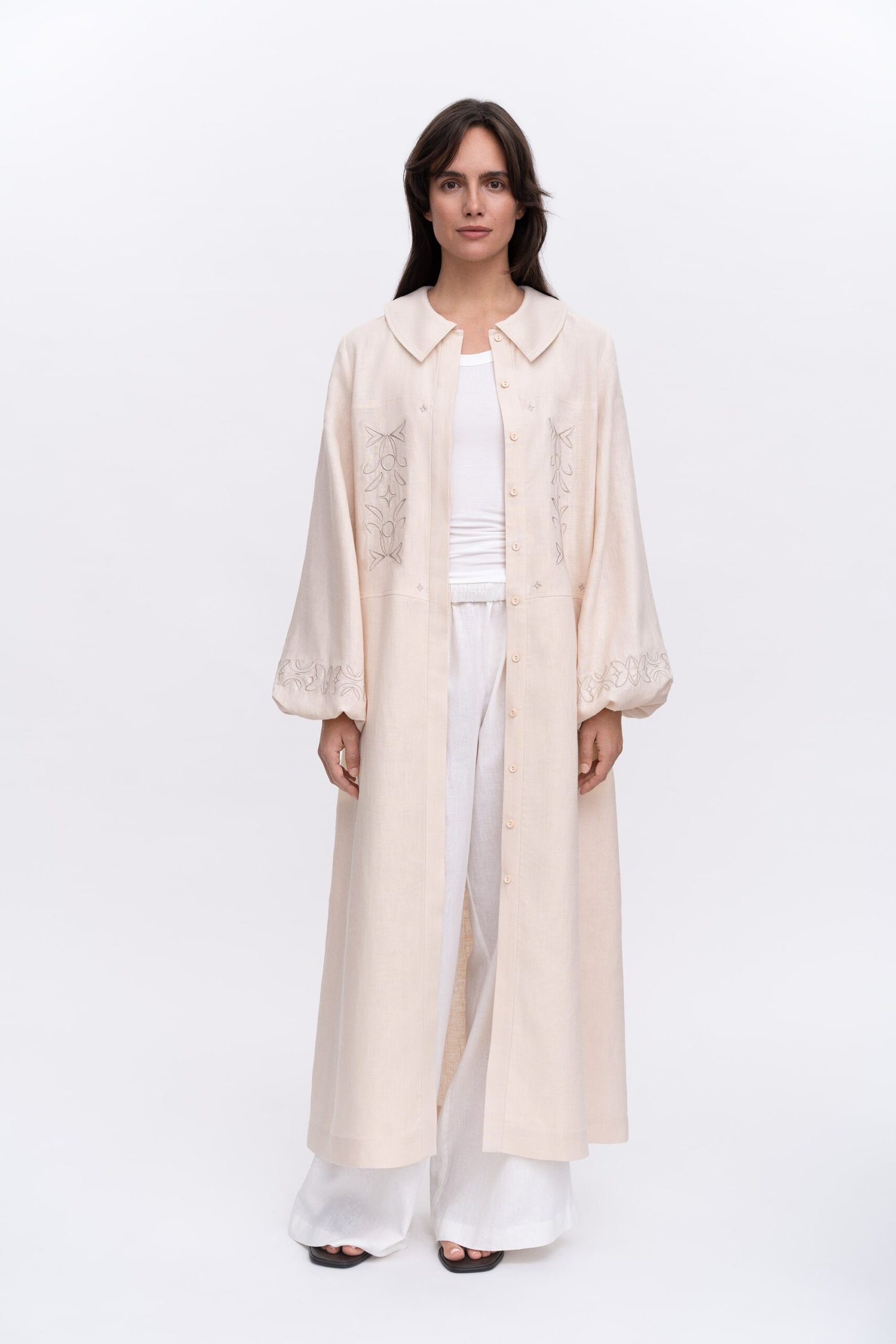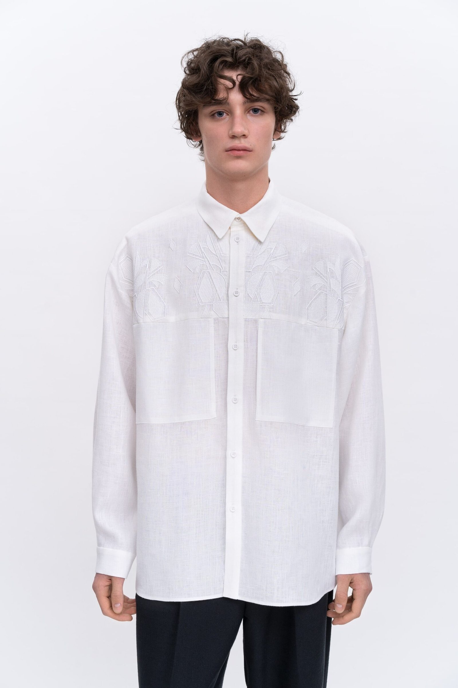 Саме геометрія, ритм і жива асиметрія цих робіт стали основою для нової колекції. До капсули увійшли чотири жіночі та два чоловічі вироби. У дизайнах використано машинну вишивку, що імітує штрихування олівцем.