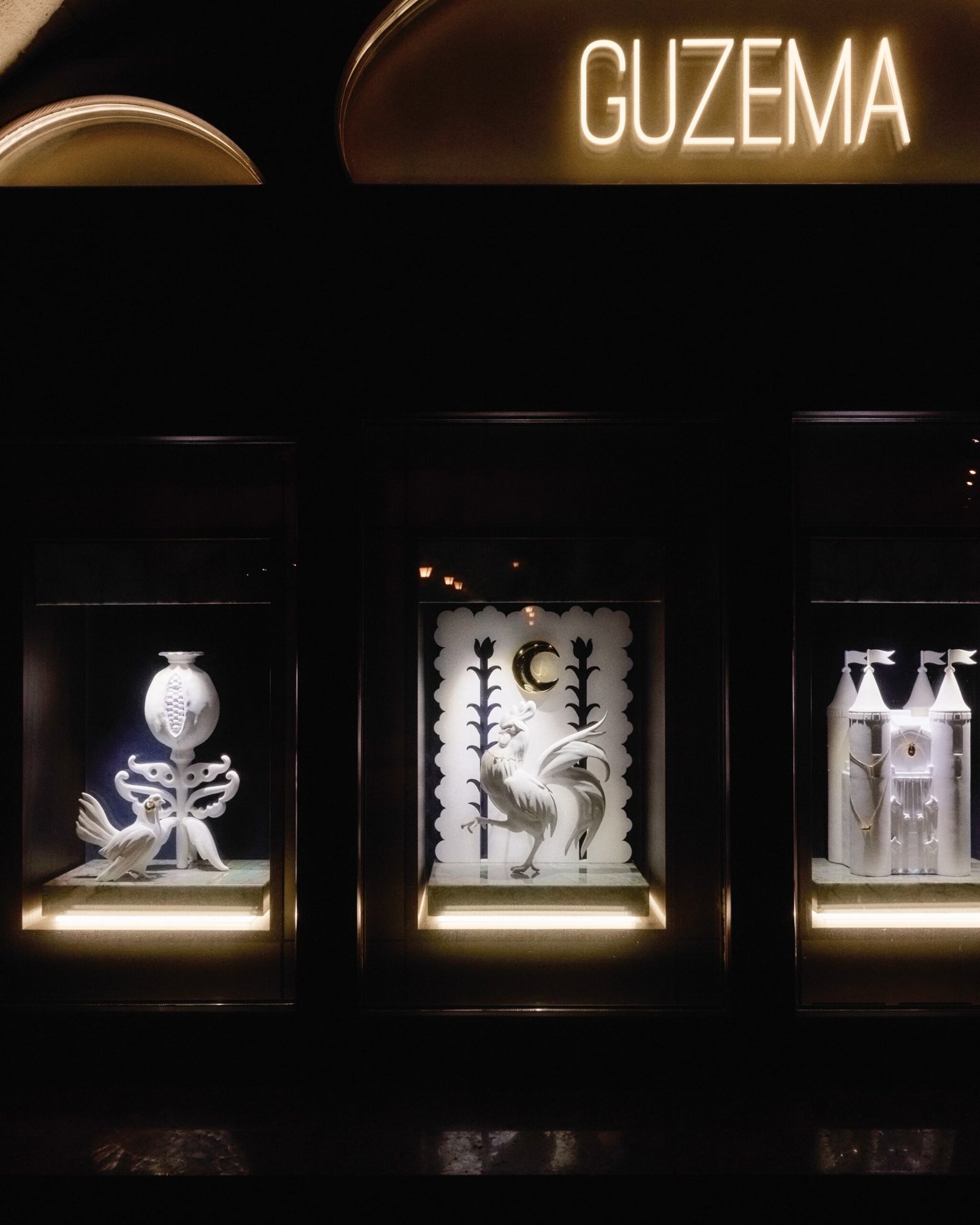 Вітрини бутиків цього року створили як продовження різдвяної колекції та водночас у загальній темі — мотиви українських казок. У Guzema кажуть, що спочатку придумали ідею казкової концепції, зробили добірку народних казок, а потім перенесли ці образи у візуальне оформлення — від дизайну книжки до оформлення вітрин.