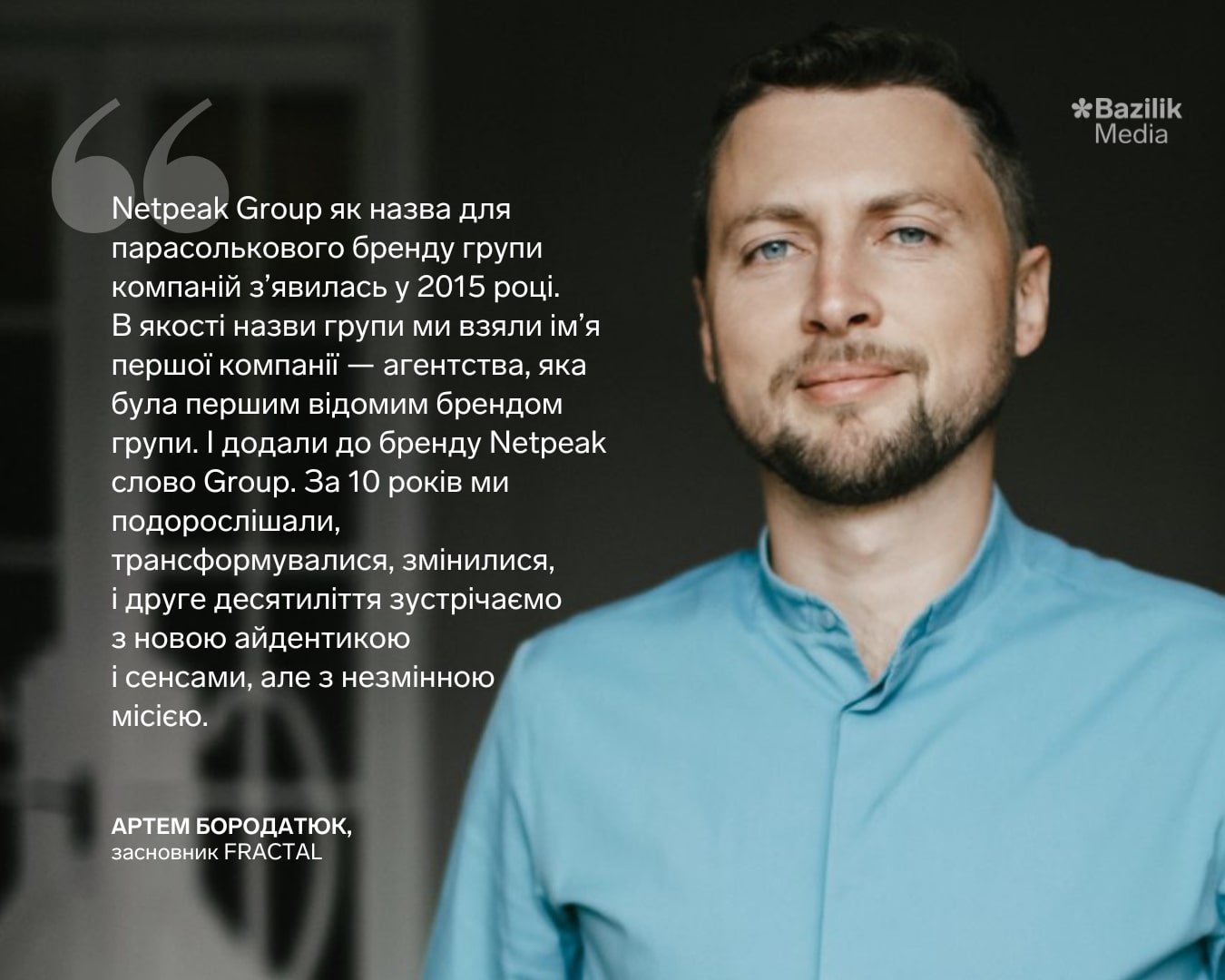 Українська група IT-компаній Netpeak Group, яка об’єднує 25 компаній, три неприбуткові організації та понад 1600 співробітників, змінила назву на FRACTAL.