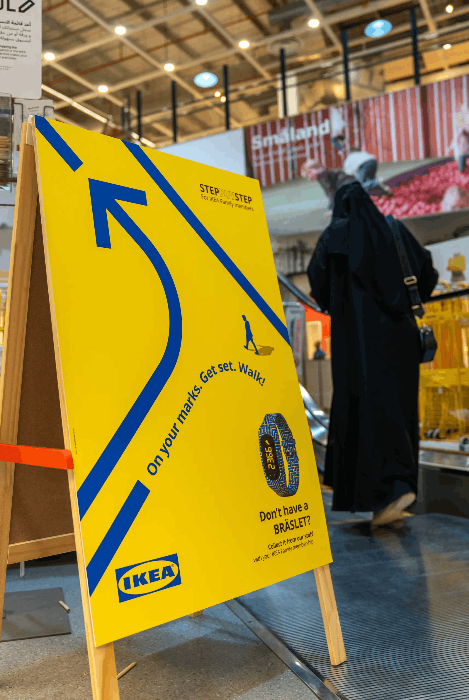 IKEA у Саудівській Аравії представила акцію Step Buy Step, у межах якої відвідувачі можуть отримати знижку залежно від кількості пройдених кроків у магазині. Ініціатива поєднує процес покупок із фізичною активністю та приурочена до Всесвітнього дня здоров’я, який відзначають на початку квітня.