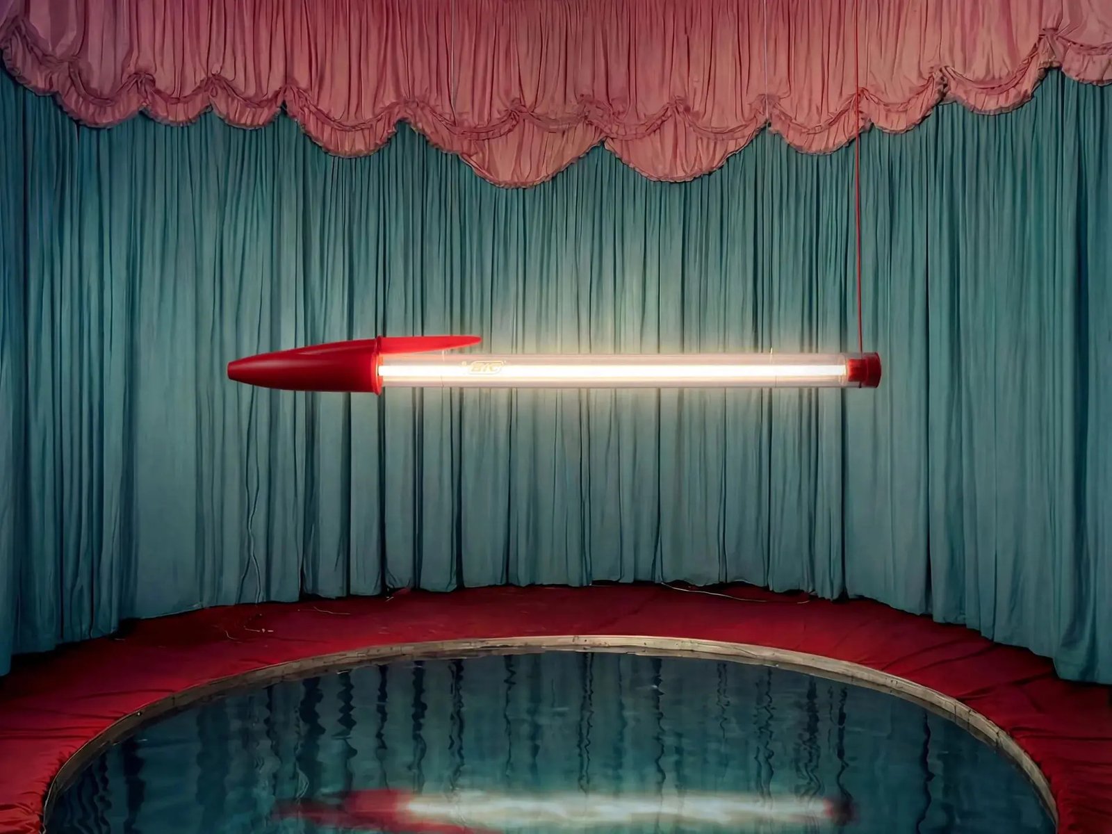 Прозорий корпус ручки тепер пропускає світло, а чорнильний картридж замінили на LED‑трубку. Кольорові елементи приховують технічні частини конструкції. Хоч ручка збільшена і стала лампою, її форма залишилася впізнаваною.