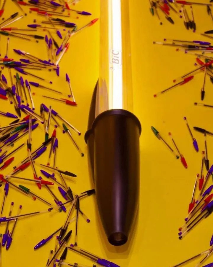 Компанія Bic спільно з італійським дизайнерським брендом Seletti представили незвичний об’єкт до 75-річчя кулькової ручки Bic Cristal. Звичний канцелярський предмет перетворили на гігантську лампу, виконану в масштабі 12:1 з повним збереженням оригінального дизайну.