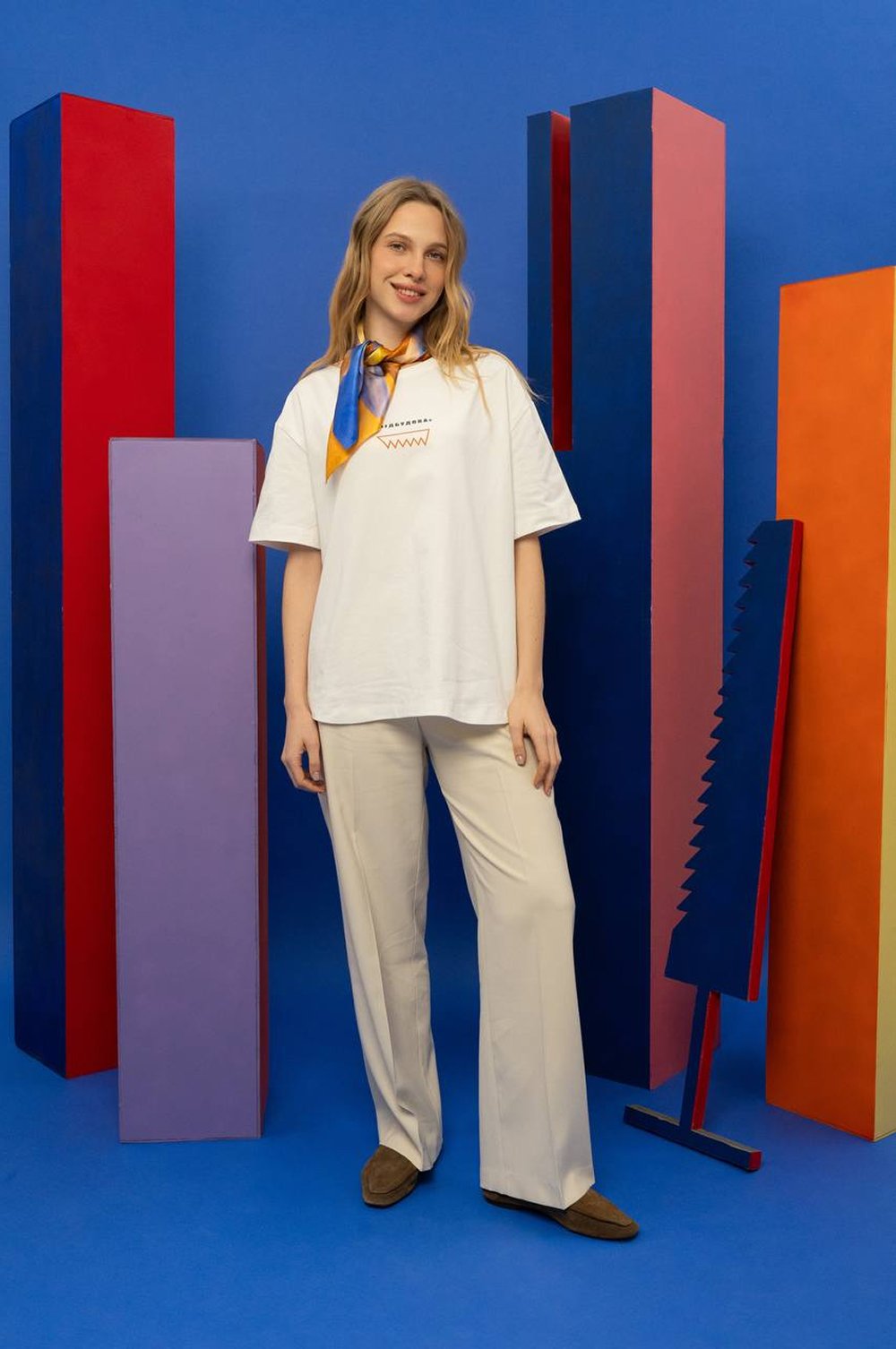 Інтерпретацію «Пилярів» втілено у двох форматах — хустині з натурального шовку та футболці.