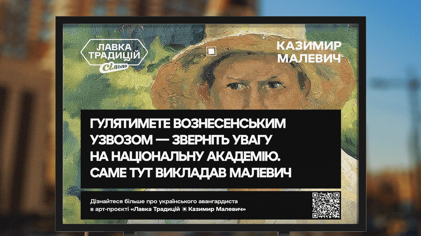 «Лавка Традицій» започаткувала міський артмаршрут, що охоплює київські адреси із життя Казимира Малевича, і доповнила його інформаційними банерами на цих локаціях.