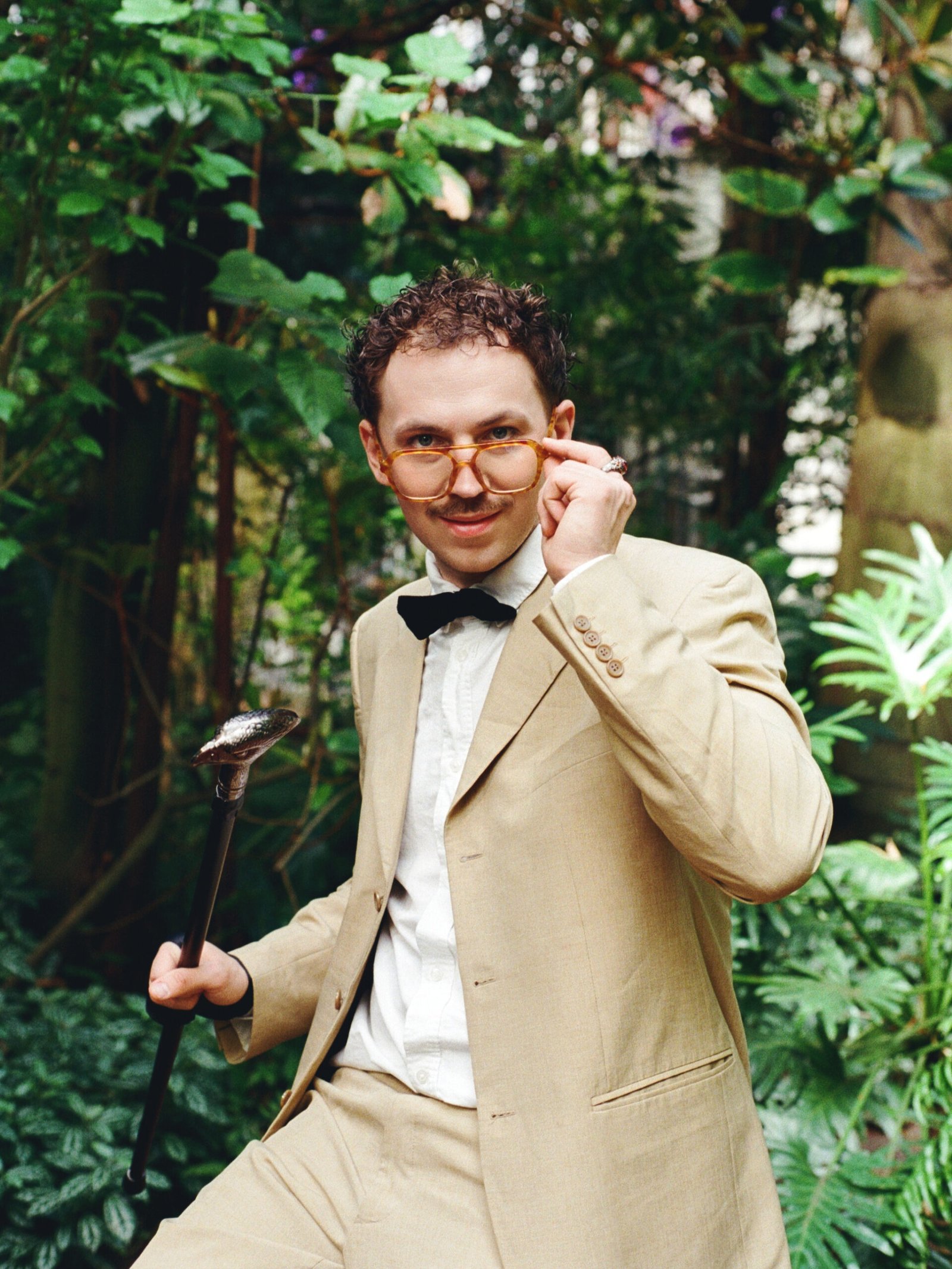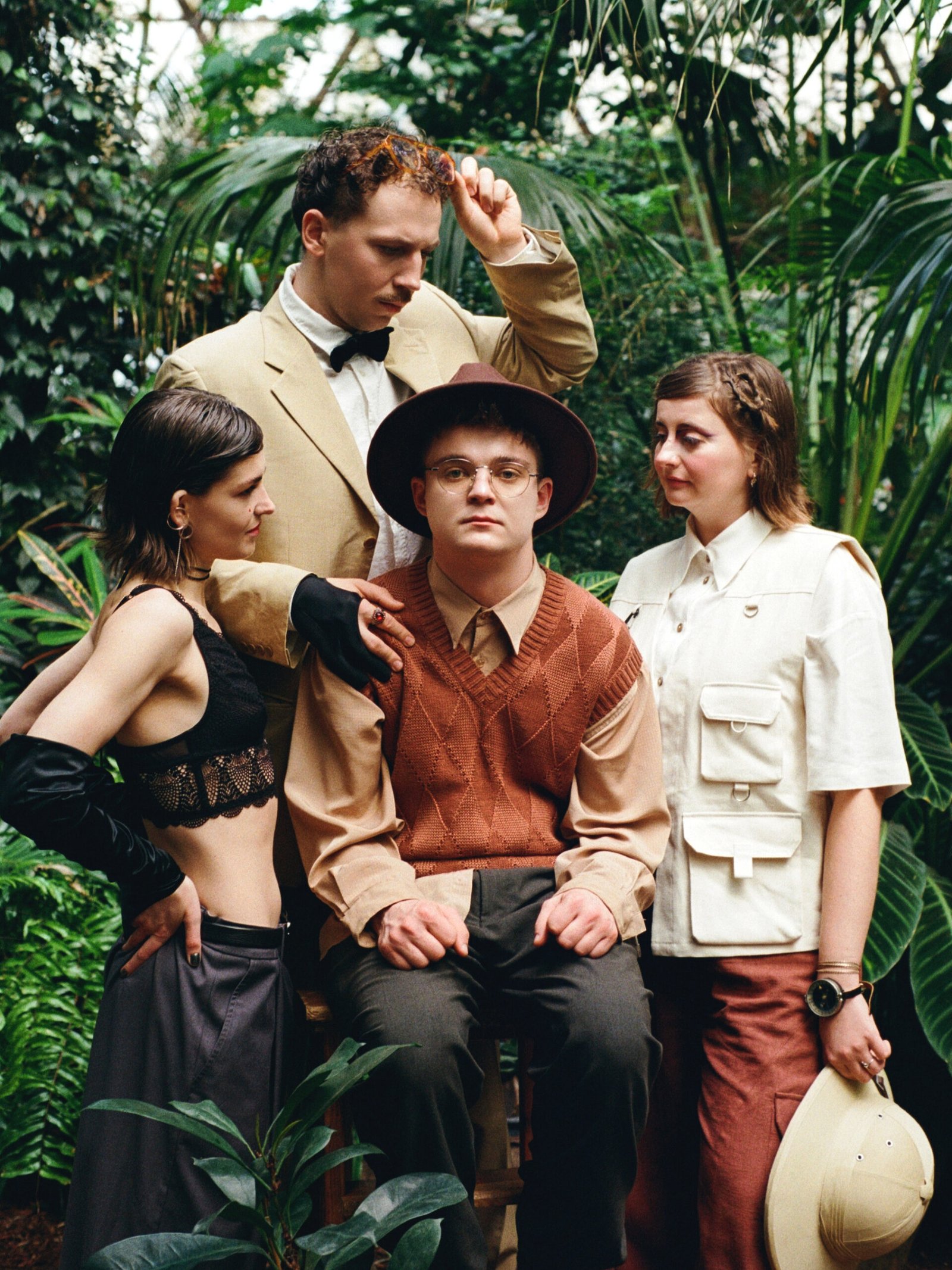 Працюючи над чоловічими образами, Дмитро Сердюк зосередився на передачі внутрішнього стану персонажа через форму: костюми мають навмисно збільшені геометризовані силуети, що створюють відчуття несталості й розпаду.