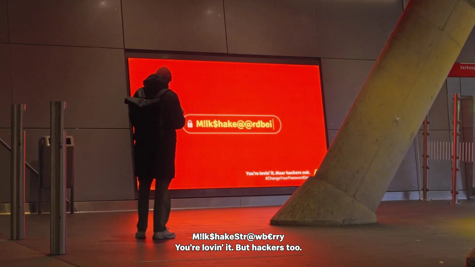 Ключова ідея комунікації — те, що легко запам’ятати, часто легко й зламати. На цифрових білбордах у Нідерландах зобразили паролі, які були викрадені під час витоків даних. Усі вони пов’язані з меню McDonald’s. Найяскравіший приклад — bigmac, який, за даними сайту Have I Been Pwned, користувачі використовували понад 110 000 разів як пароль. Також згадані інші страви з меню: frenchfries (картопля фрі), happymeal та mcnuggets (курячі нагетси). Ці слова знайомі та приємні для користувачів, але одночасно надзвичайно передбачувані, що підкреслює вразливість наших цифрових звичок, пише CREAPILLS.