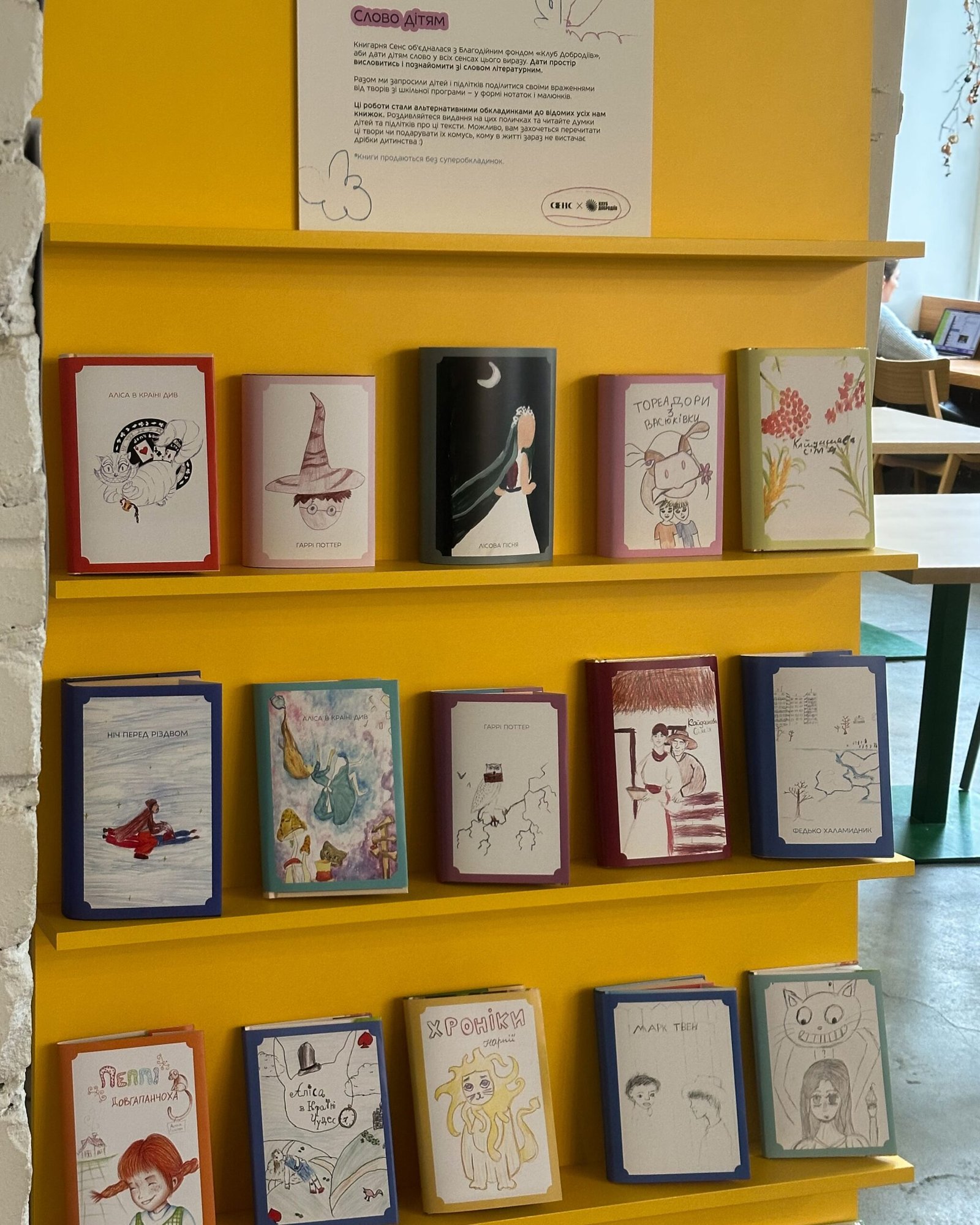 Створені роботи стали основою альтернативних обкладинок до відомих книжок, які тепер представлені на полицях усіх книгарень «Сенс». Проєкт покликаний показати, як дитяче сприйняття допомагає оновлювати й переосмислювати тексти, що входять до шкільної програми.