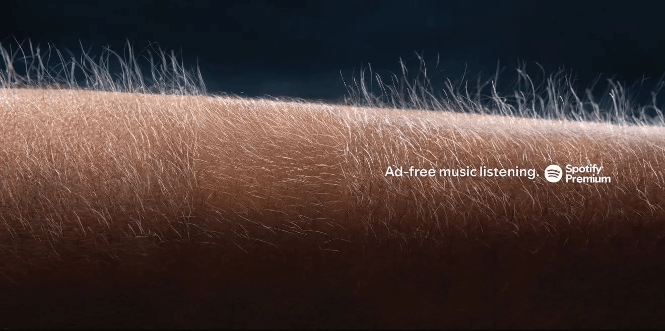 У новій кампанії показано, як реклама буквально перериває фізичні реакції, викликані музикою, — наприклад, сльози чи мурахи по шкірі. Через цю ідею платформа також звертає увагу на можливість слухати музику без перерв, оформивши передплату Premium, пише CREAPILLS.