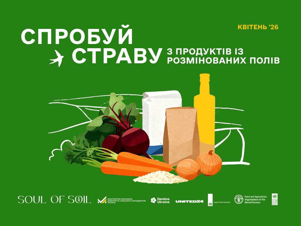 В Україні стартувала комунікаційна кампанія «Soul of Soil: страви з розмінованих полів», у межах якої 12 закладів Києва пропонують страви з продуктів, вирощених на очищених від мін територіях. Частину прибутку спрямовують на гуманітарне розмінування через платформу UNITED24.