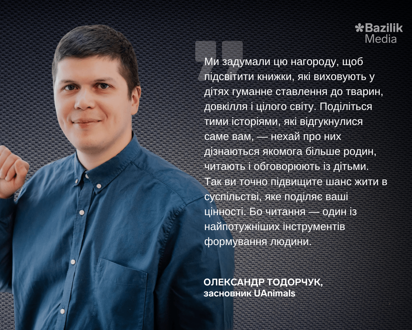 Організація з порятунку тварин і довкілля UAnimals розпочала прийом заявок на премію дитячої літератури «Гуманна книжка-2025».