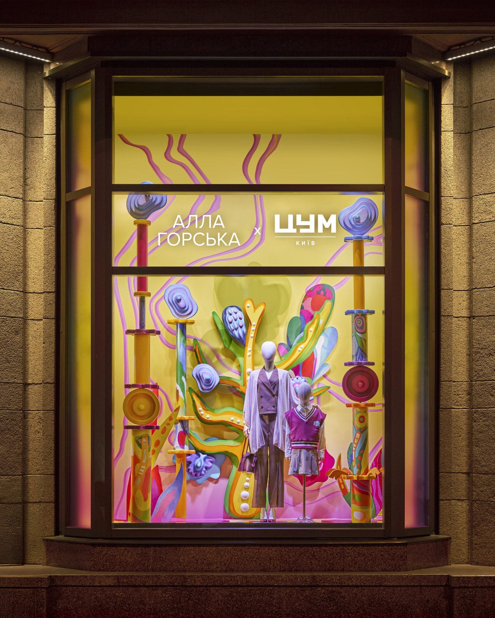 У центрі проєкту — сім вітрин, натхнених роботами Горської та Зарецького. Це не пряме відтворення, а сучасна інтерпретація, яка занурює у колірну й образну мову митців, розповіли у пресслужбі проєкту.