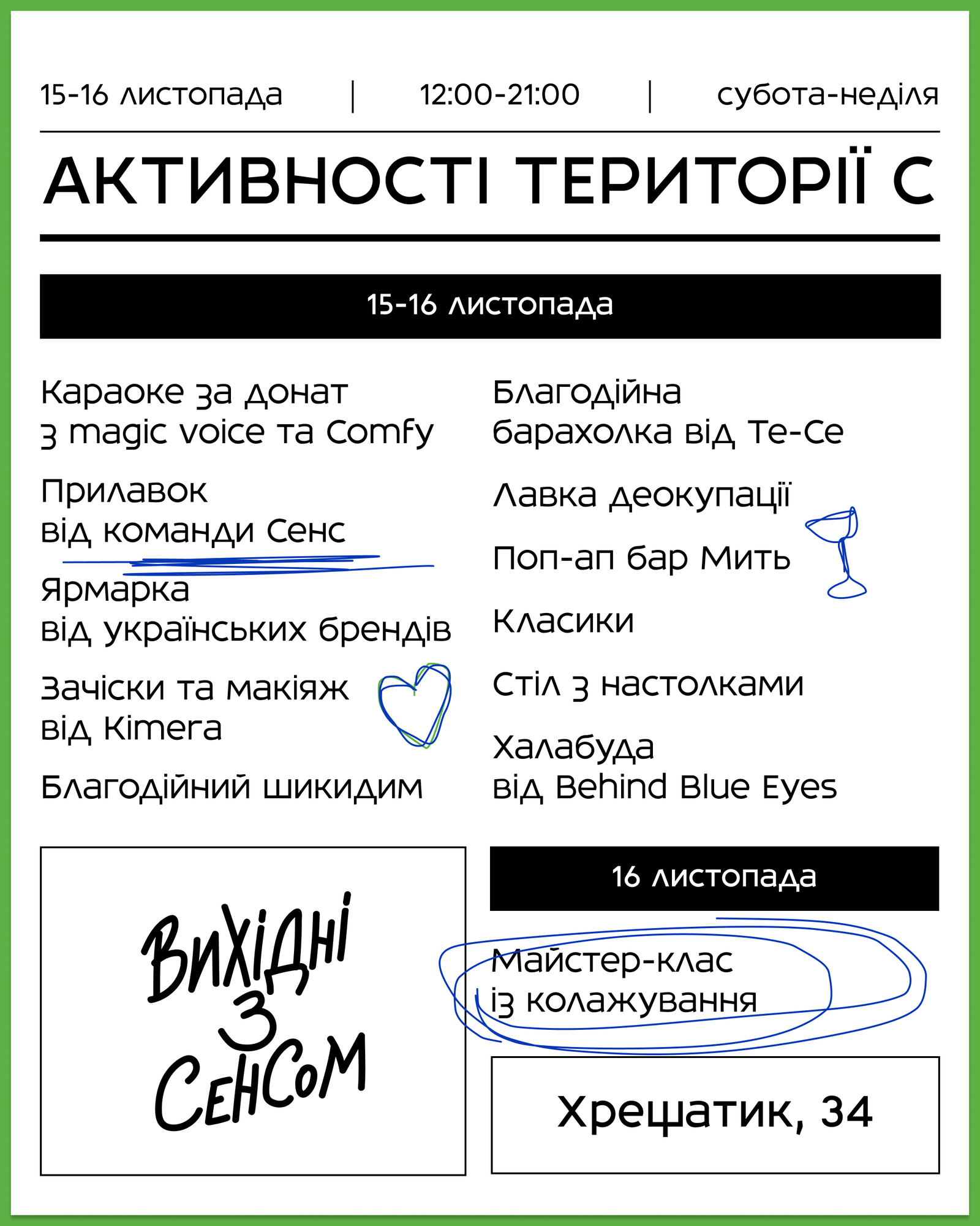 Подія триватиме 15-16 листопада з 12:00 до 21:00 і пропонуватиме різні активності для гостей.