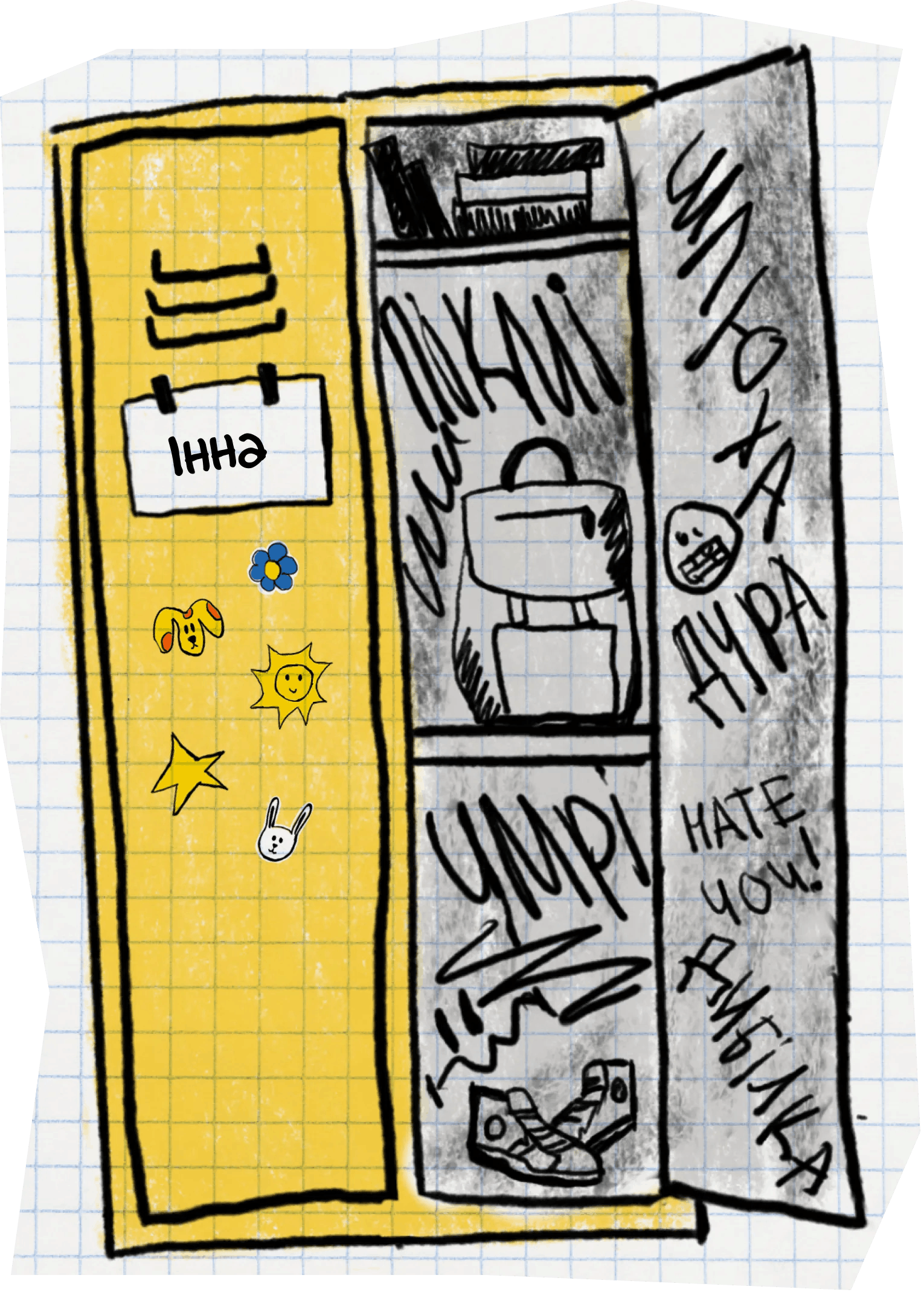 У Києві з’явились інсталяції у вигляді шкільних шафок, які містять історії про булінг у навчальних закладах. Проєкт має на меті привернути увагу до насильства над дітьми з боку однолітків, учителів і батьків.