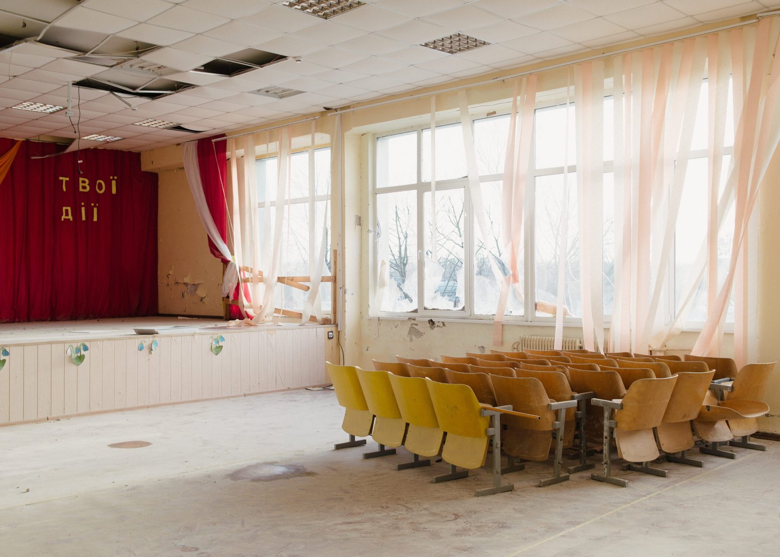 «Перехідний стан» — це серія фоторобіт, які Костя Гузенко створив упродовж періоду повномасштабного вторгнення. Перші знімки були зроблені під час експедицій деокупованими територіями Сіверщини, Слобожанщини та Донеччини. Згодом, уже перебуваючи на службі як штаб-сержант морської піхоти, фотограф фіксував повсякденну роботу морпіхів на різних напрямках — від Миколаївщини до Херсонщини й Донеччини.