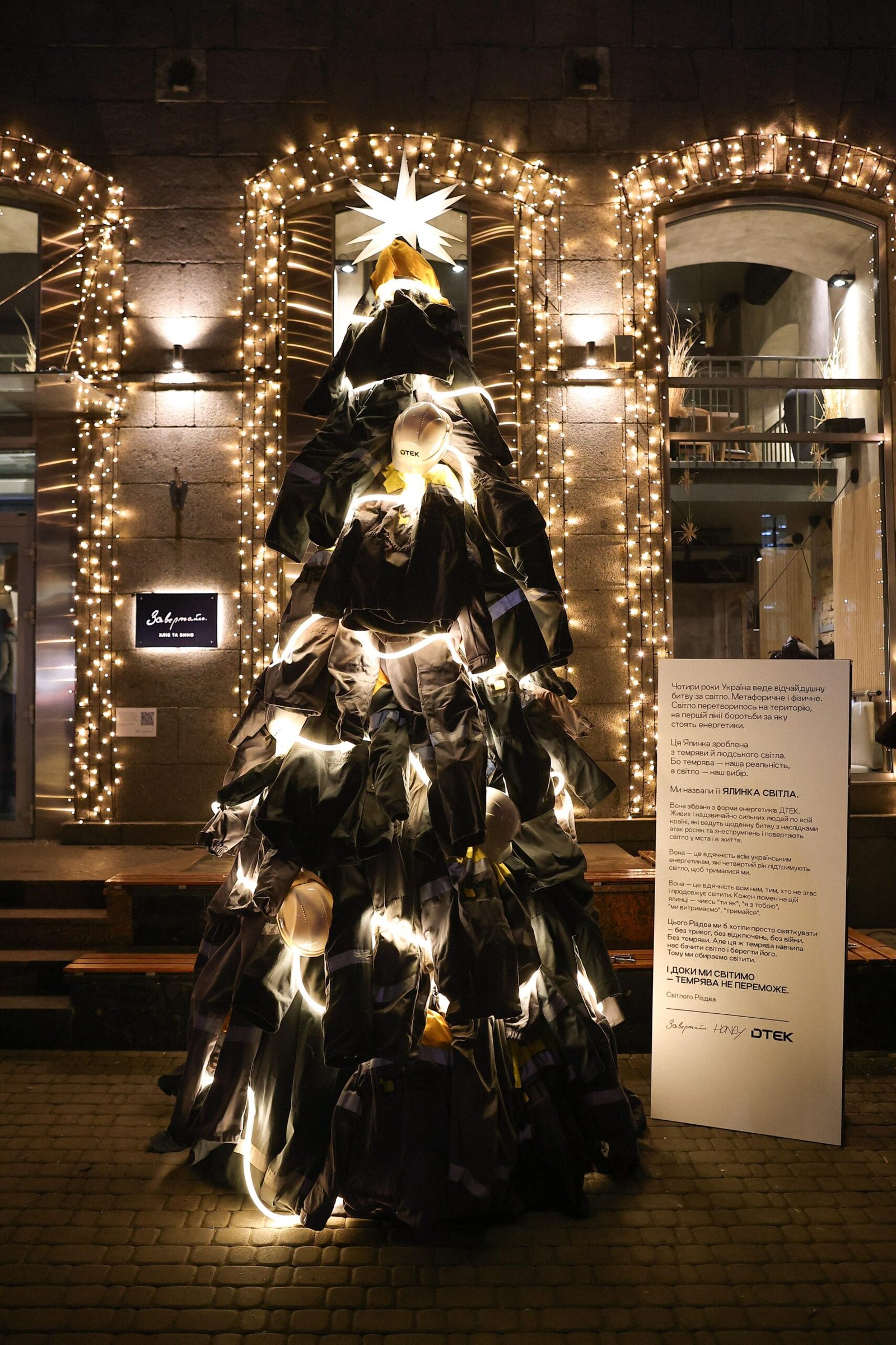 «Темрява — наша реальність, а світло — наш вибір. Поки країна живе під загрозою відключень, тисячі енергетиків щодня повертають електрику. Ця ялинка — наша вдячність їм і всім, хто продовжує світити, попри темряву», — зазначає команда проєкту.