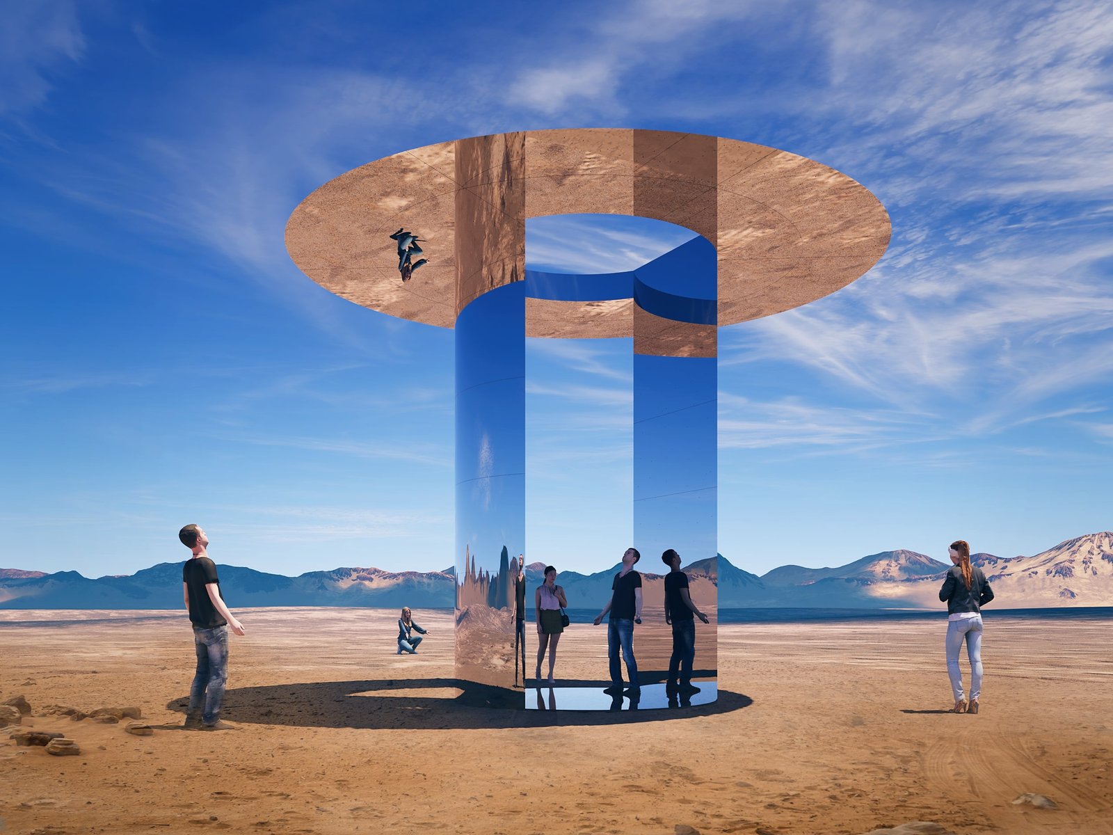 Концепція побудована на оптичних ефектах, які стирають межу між небом і землею, створюючи ілюзію безмежного простору. Вдень об’єкт відображає небо у піску, формуючи гармонійний зв’язок із ландшафтом, а вночі функціонує як простір для тиші та внутрішньої взаємодії. У проєкті використані інтегровані звукові хвилі, що доповнюють візуальний складник.