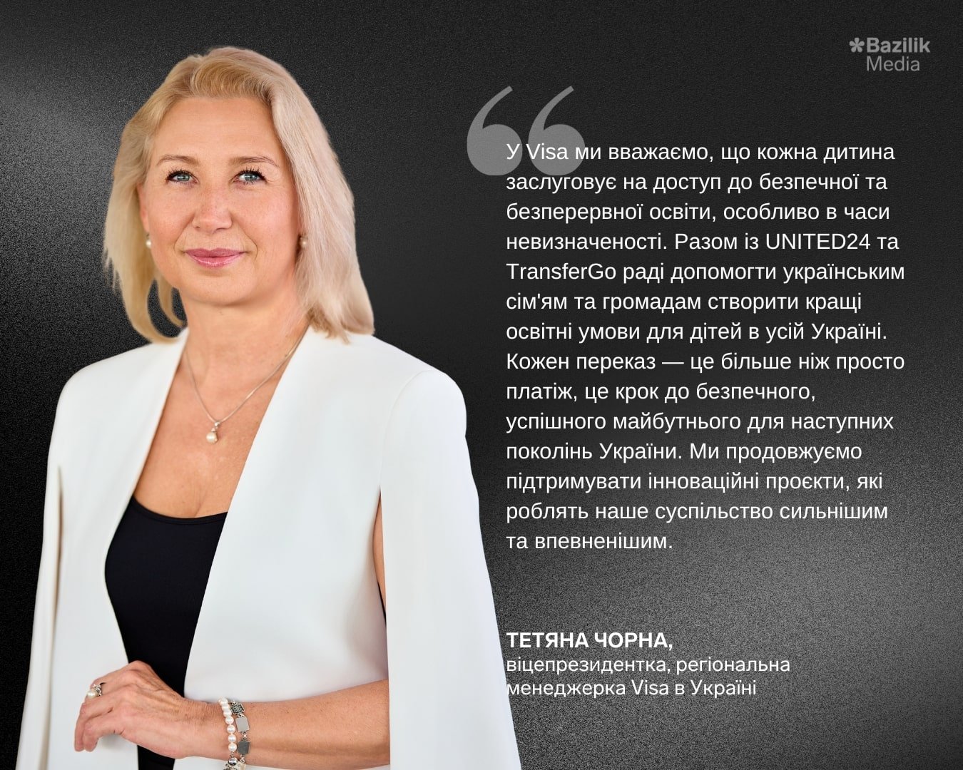 Фандрейзингова платформа UNITED24, фінтех-компанія TransferGo та платіжна система Visa оголосили про старт спільної ініціативи «Кожен переказ має значення», спрямованої на створення безпечніших умов навчання для дітей в Україні.
